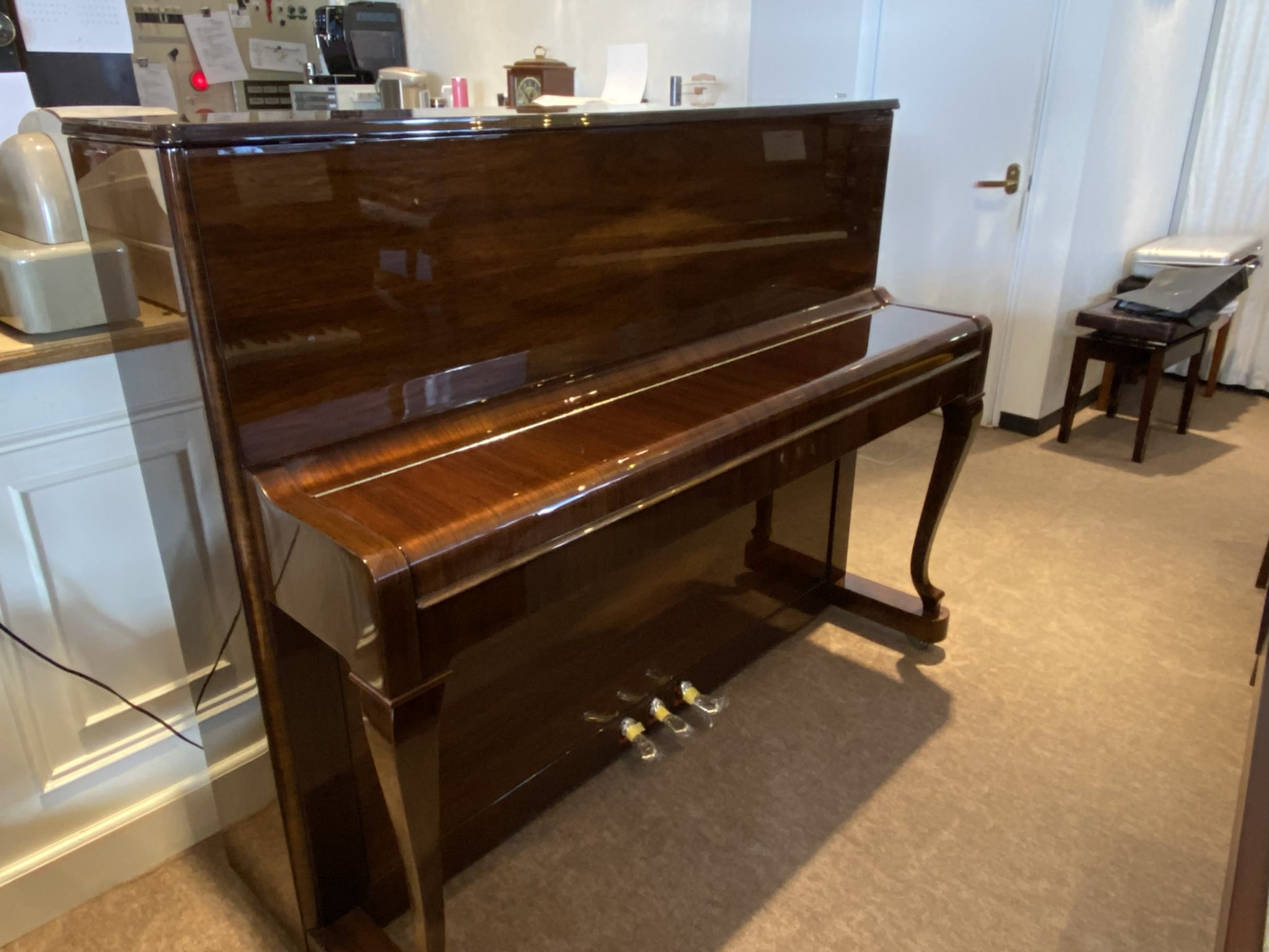 全くの新品同様のペトロフピアノが入荷しました。 ヨーロッパ製ピアノの中ではペトロフは日本国内でも結構ポピュラーなブランドですが、その割には中古が入荷するのは珍しいです。 しかも今回のような新品同様の個体は特にそうです。 もちろん内外装、入念に再調整してありますので、これから一生の伴侶として、家族の一員として可愛がってあげてください。 現行機種で、現在の新品価格は¥1,782,000.(税込み)ですからちょうど半額というスペシャルオファーです。 雰囲気、色合いぴったりのイタリア製新品ベンチもお付けします。