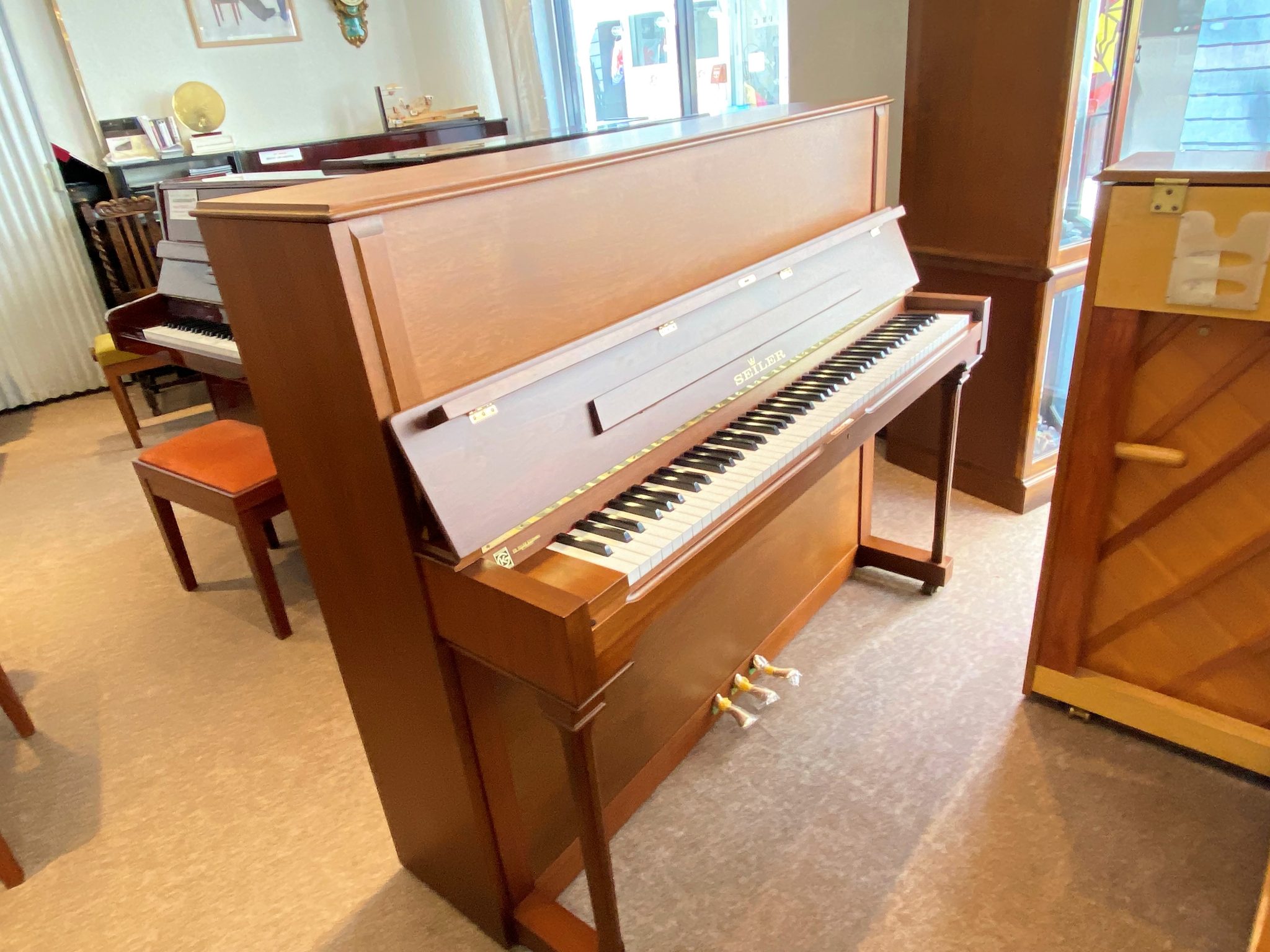 とても優雅な雰囲気のドイツの逸品、ザイラーピアノが入荷しました。 新品時に弊社で輸入、販売させていただいたものです、、中古が入庫することはまず滅多にありません。 音色はドイツのまさにそれ、、とてもふくよかに品良く響きます。 内部は入念に再調整、外装は今回全塗装いたしましたので、外観も新品のようです。 ちょっと細目でラインの入った前脚が優雅な雰囲気を一層引き立てます。 ザイラー社はその後経営資本が変わり、アジアでも生産されるようになりましたが、このピアノは正真正銘のドイツ クラフトマンシップの逸品です。 どうぞご試弾、ご高覧くださいませ。