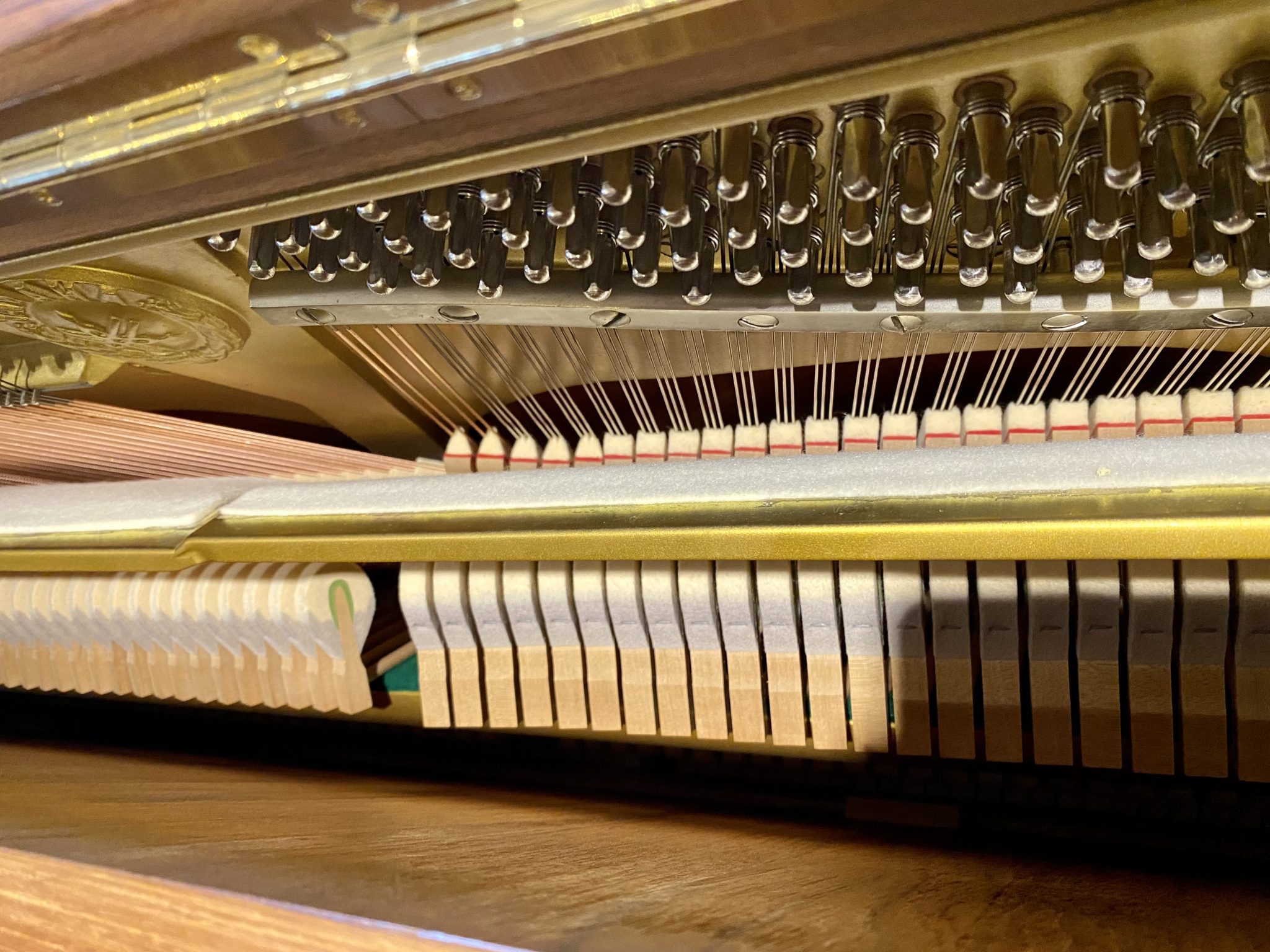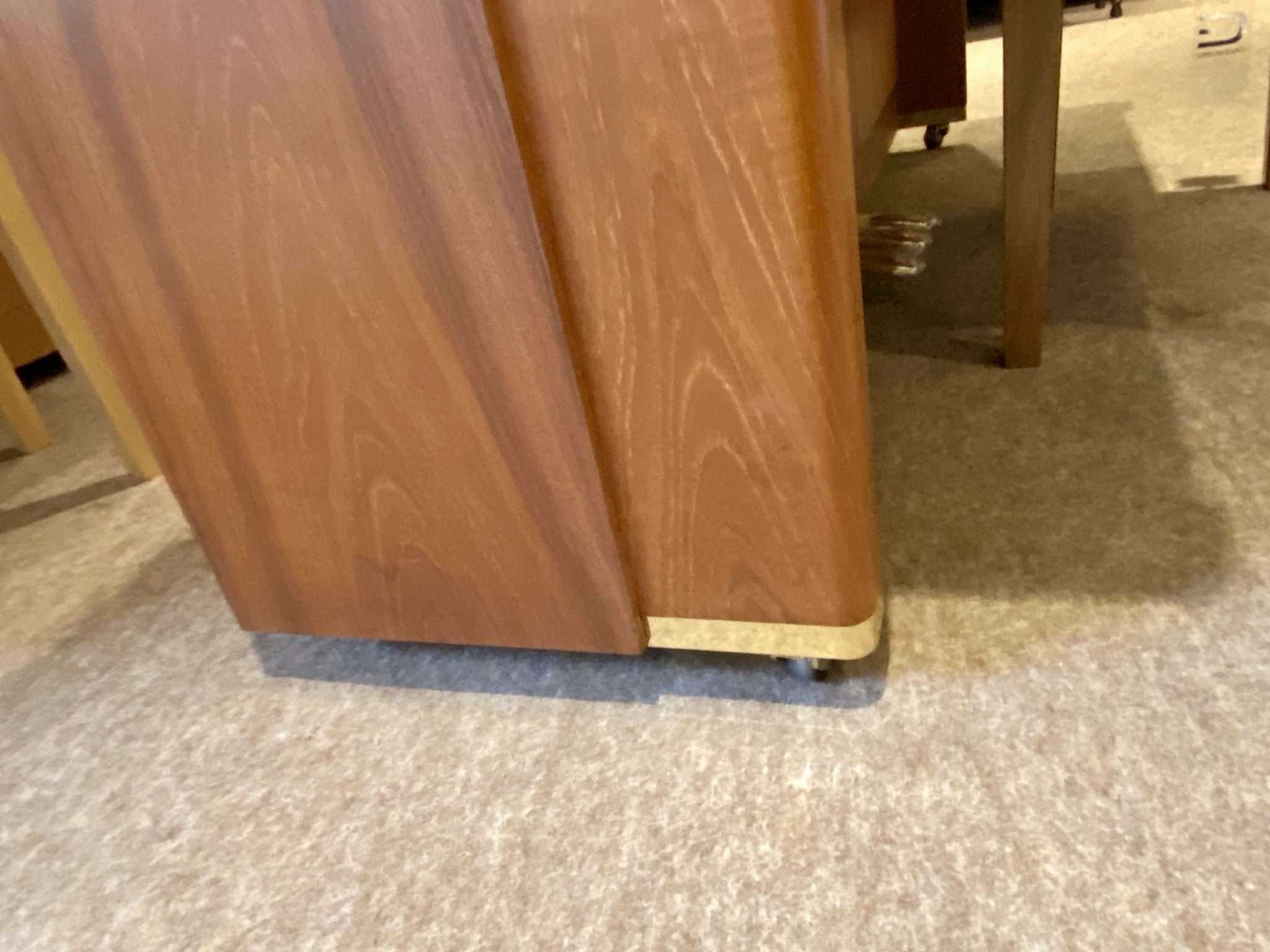 とても綺麗なヤマハの木目です。 程度極上、、、外装材はかなり明るめのチーク材ですので、お部屋が明るくなります。。 こういう外装材は、傷やほこりも目立たないし、日ごろのメンテナンスも楽です。 今回ももちろん細部まで入念に調整されていますので、音色もとても奇麗ですし、新品感覚でお使いいただけます。 安心して末永くお弾きいただけます。 高さも121㎝ですから決して大きいピアノではないので、設置したときの圧迫感はありません。 専用ベンチはトップ張替え済みです。