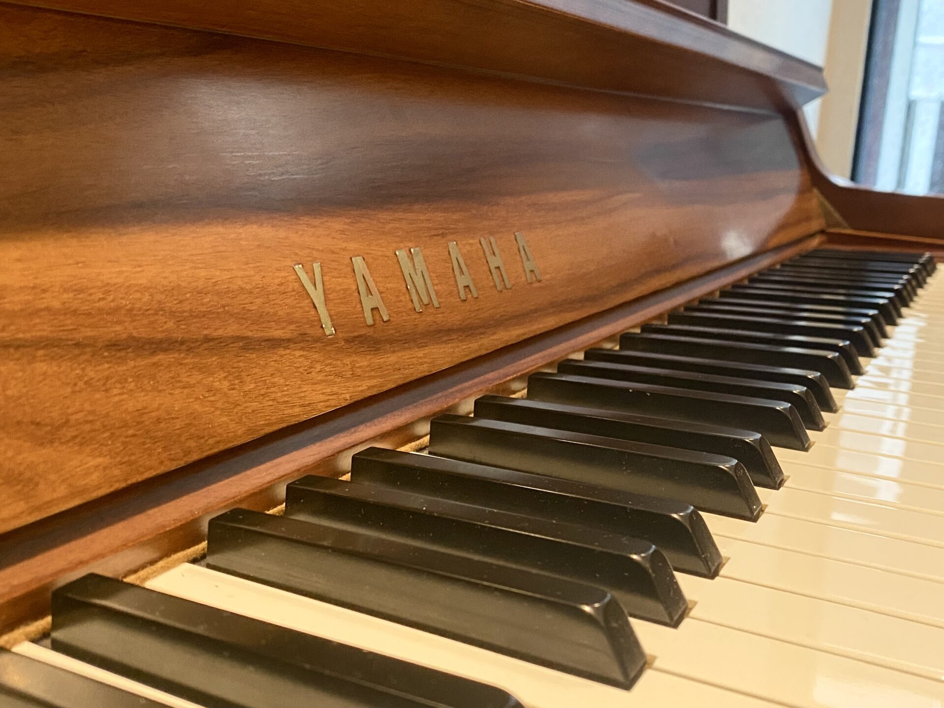 木目がとても美しいローズウッドの艶消し仕上げです。 ローズウッドは今ではワシントン条約品目になって入手不可能な外装材ですので、今後このようなピアノが造られることはございません。 譜面台が上側に付いているタイプですので、楽譜も置きやすく、また見た目の重厚感もあります。 音色はヤマハらしい明るめの感じです。 内部の調整もしっかり入念に施されていますからこれから安心して末永くお使いいただけます。 今回とてもお手頃価格でのご提供です。 専用ベンチはトップを新品の高級ベルベットに張り替えました。