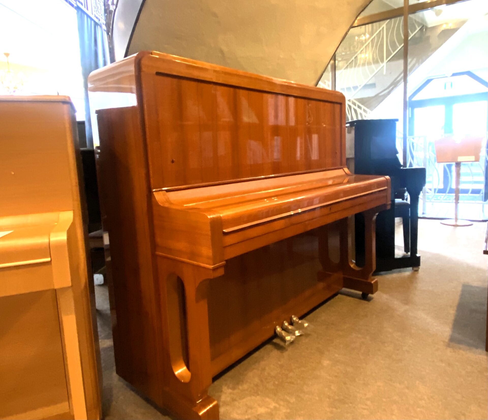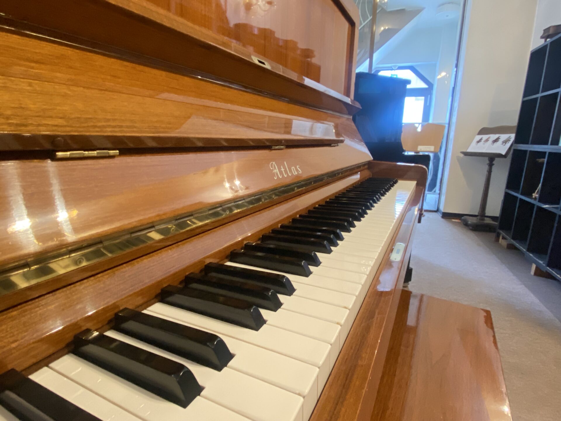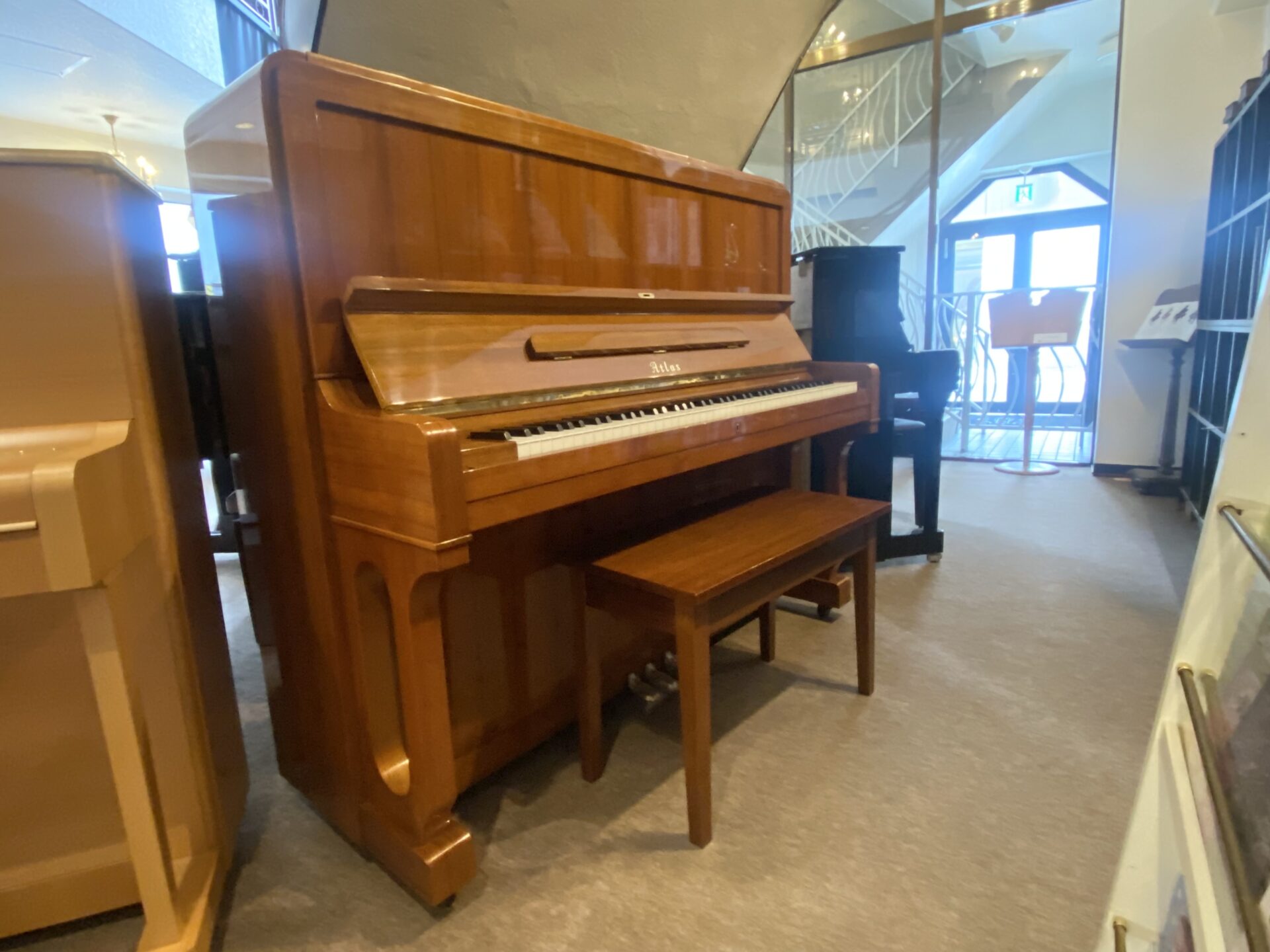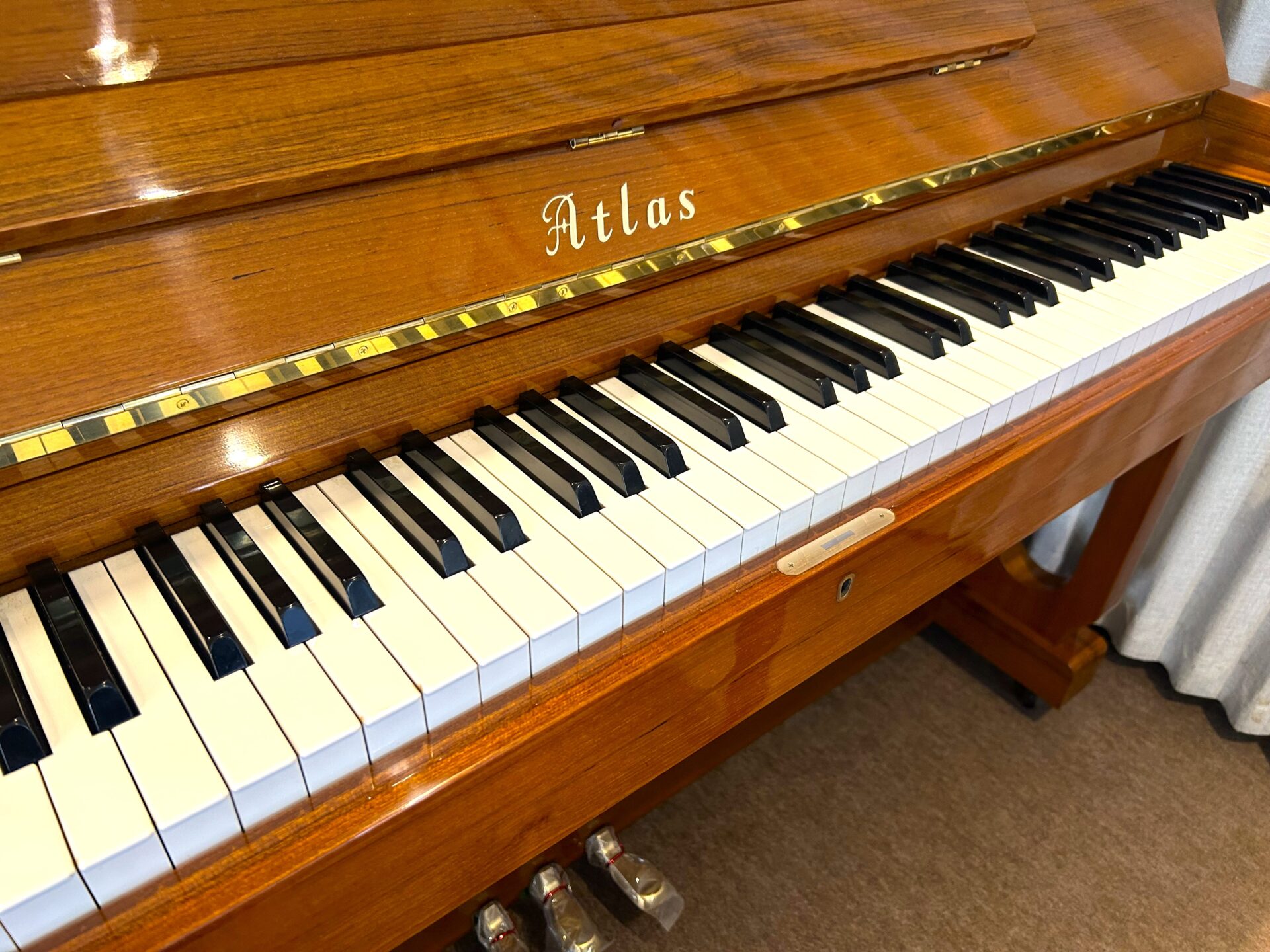 純国産のブランド アトラスの最高機種が入荷しました。 レスナーさんのフアンも多く、当時はかなりの台数を販売していたメーカーです。 高さ132.5cmというサイズは世界中のアップライトの中でも一番大きい部類で、見た目も重厚感にあふれていますが、大きくても専有面積は小型のピアノと変わりません。 明るいチークの艶出しという外装は極めて珍しい仕上げです。 一生懸命良い楽器作りに専念していた浜松の職人たちの魂が伝わってきます。 もちろん弊社で再度入念に調整いたしましたので、これから末永くお使いいただけます。