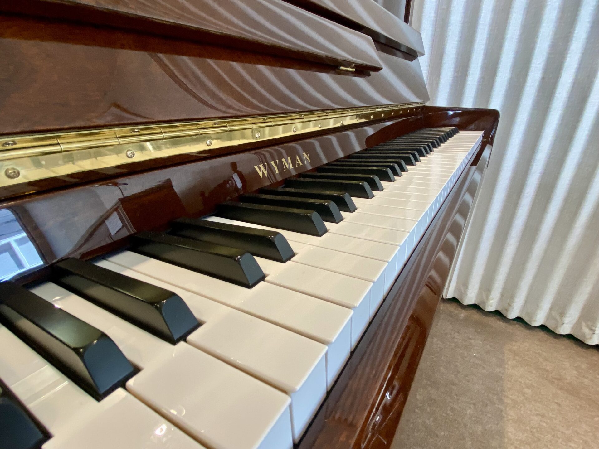 ワイマン独特の少し明るめの音色で、低音から高音までバランスよく響いています。 電子ピアノのご予算でお求めいただける“本物”のピアノ、、、美しい木目はお部屋のインテリアとしても素敵です。 今回入念に再調整いたしました。