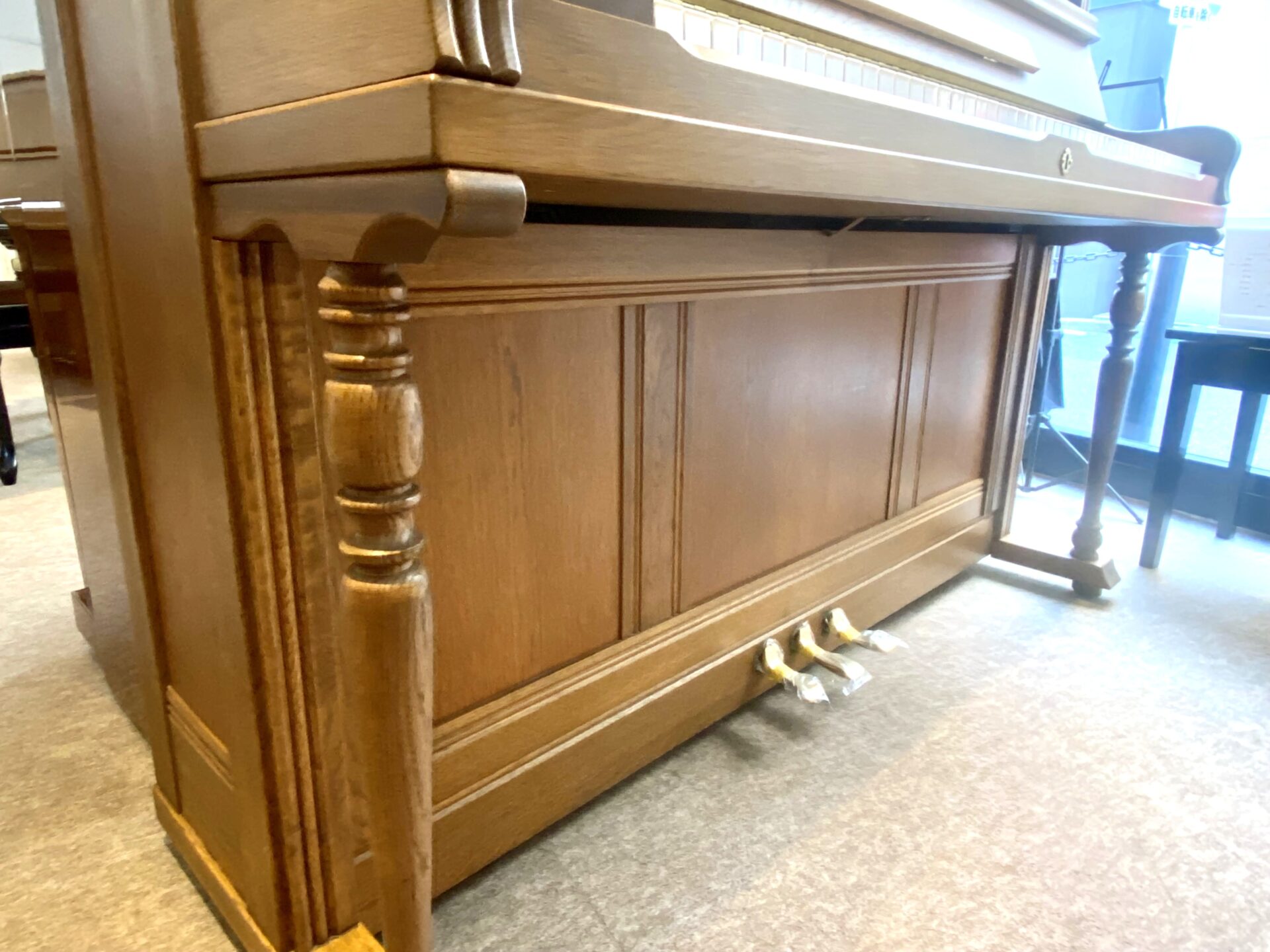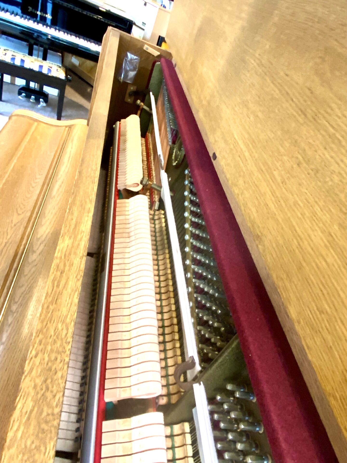 とてもとても珍しいオランダのピアノです。オランダでピアノ造ってるの? と思われるかもしれませんが、リッペンは戦後もっとも急成長したメーカーのひとつです。この個体は新品時に弊社で販売させていただいたものですが、中古で入庫したのは私の知っている過去40年間でわずか2台だけです。今回入念に修理、調整させていただきましたのでこれから末永くお使いいただけます。外装材がほぼすべて無垢のオーク材、、、見ための質感もとても温かみがあります。こういう楽器はもう造られることは無いでしょう。リッペンはフレームの材質と構造が特殊なのも特徴です。音色もとてもヨーロッパらしい感じです。同じ材質のとても洒落たマッチングベンチも付きます。インテリアとしても素敵な生粋のヨーロッパの楽器です。