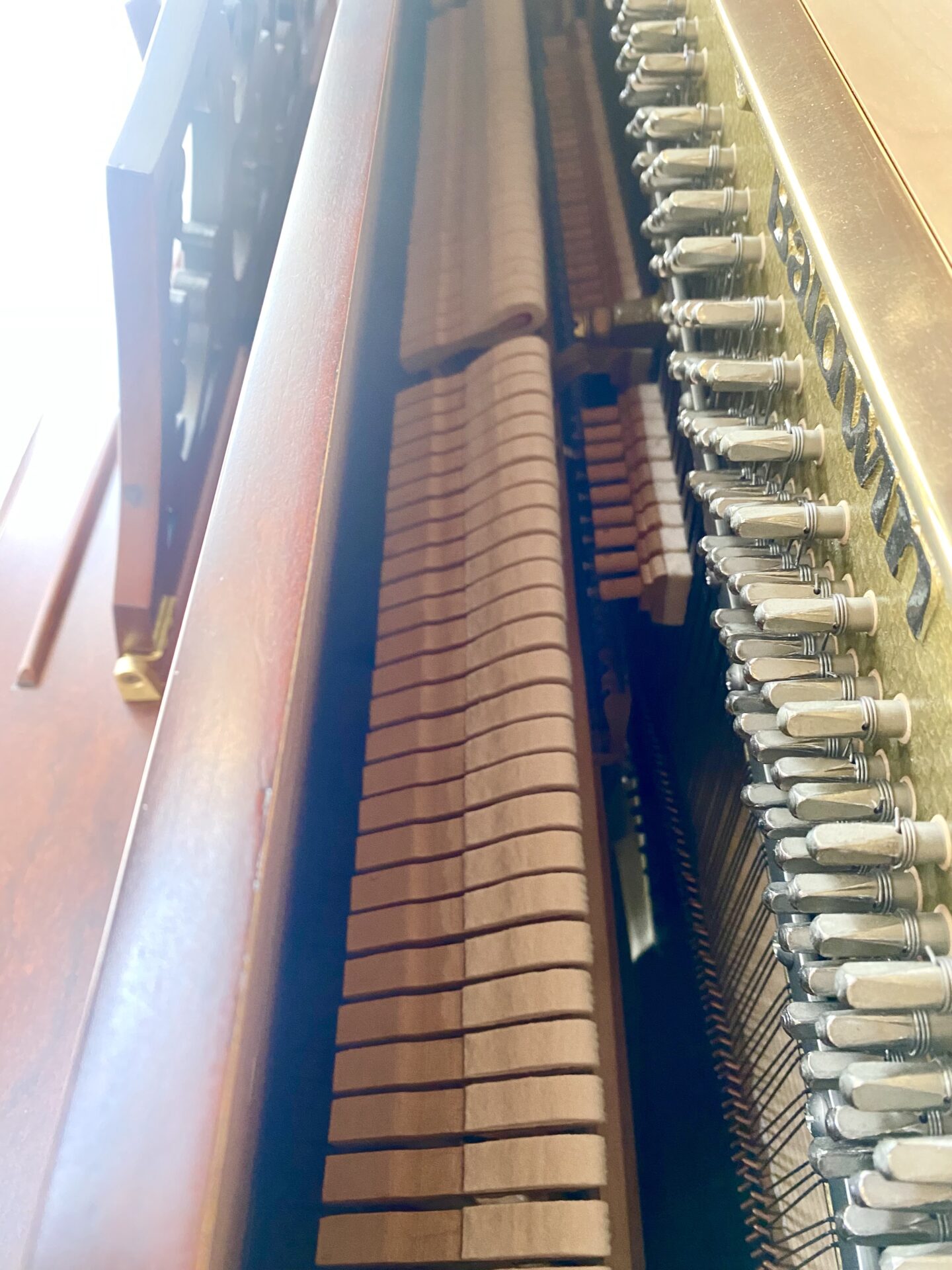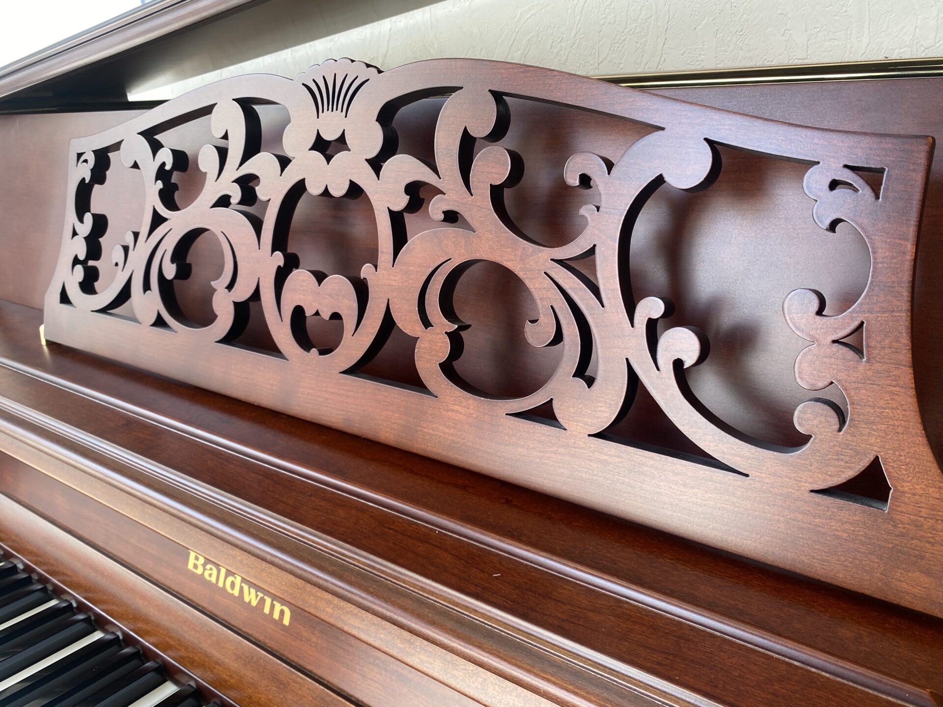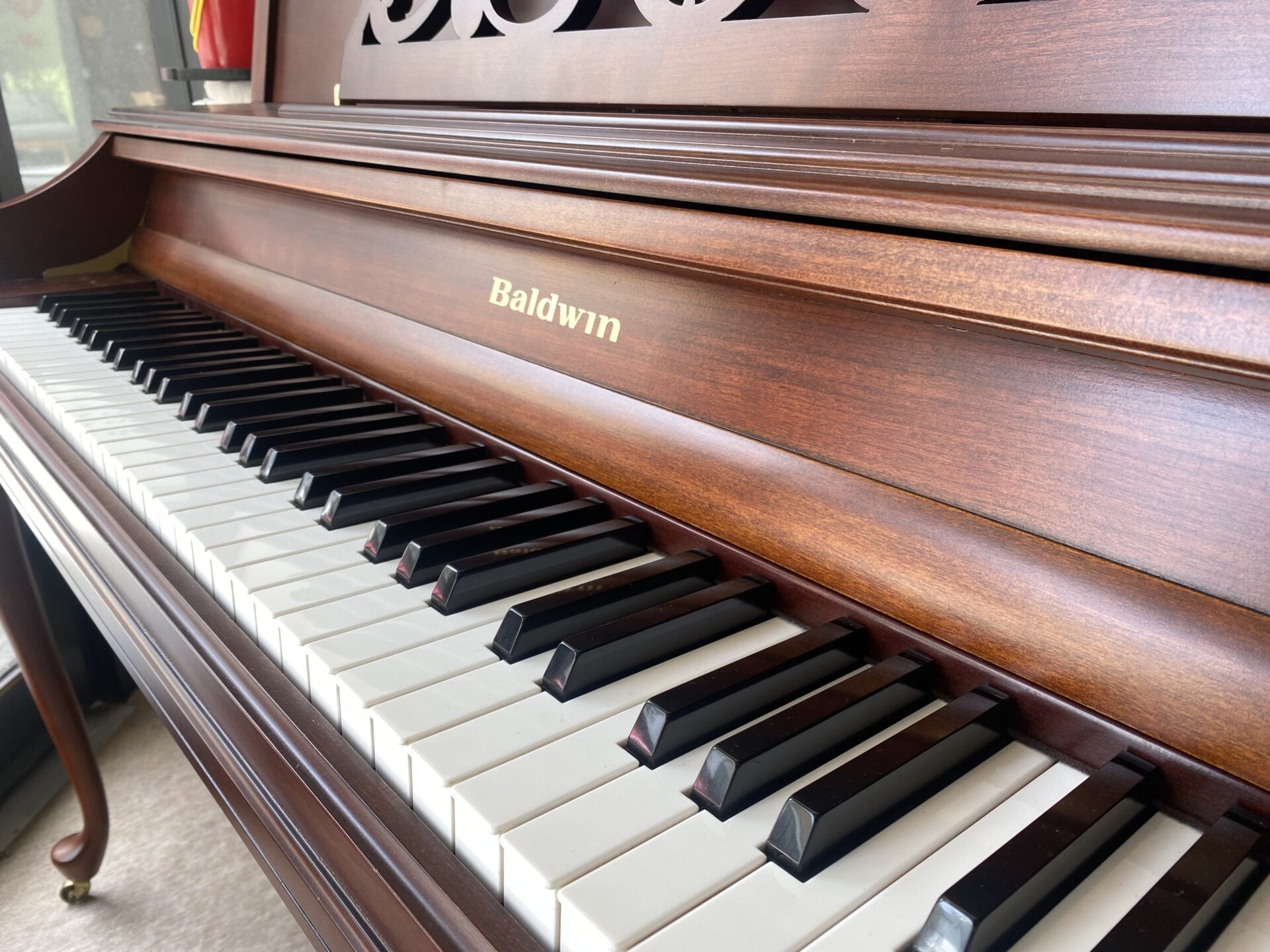 高さ112cmと、コンパクトに感じますがアメリカ製ピアノとしては標準サイズです。 アメリカで当時最大のメーカーだったBaldwin(ボールドウィン)は、フルコンサートグランドピアノまでラインナップしていて、多くのアーティストから支持されていましたが、日本人では小澤征爾さんが有名です。 今回入荷のこのモデル、新品時に弊社で輸入、販売させていただいたもので、元々耐久性で定評あるアメリカ製ですが、今回また全塗装、再調整して新品のような仕上がりです。 アメリカではとてもポピュラーなメーカーでしたが日本にはあまり輸入されませんでしたので、これほどの仕上がりのボールドウィンは探しても見つかりません。