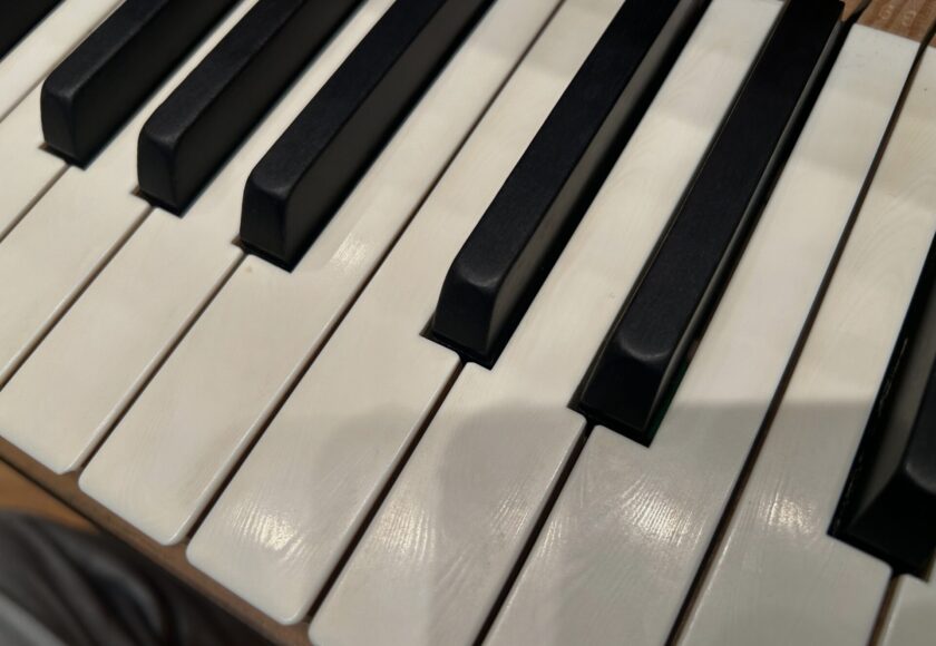 ライトが微妙に鍵盤にあたってるから、白鍵の象牙、その木目みたいに見える「年輪」が何とも美しい(^^)/、、、写真じゃわかりませんよね((+_+))