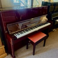 本日入荷のヤマハの中古アップライト、、、外装材がユニークです。。