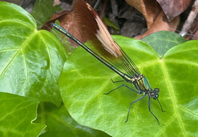 今やスマホ向ければ瞬時に名前どころか習性まで教えてくれる、、、結果「カワトンボ」というらしい、、、渓流とかに居るらしいから、ま、自然環境良いってことですね(*^^*)